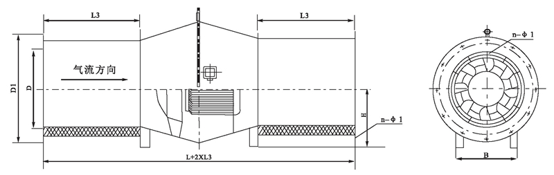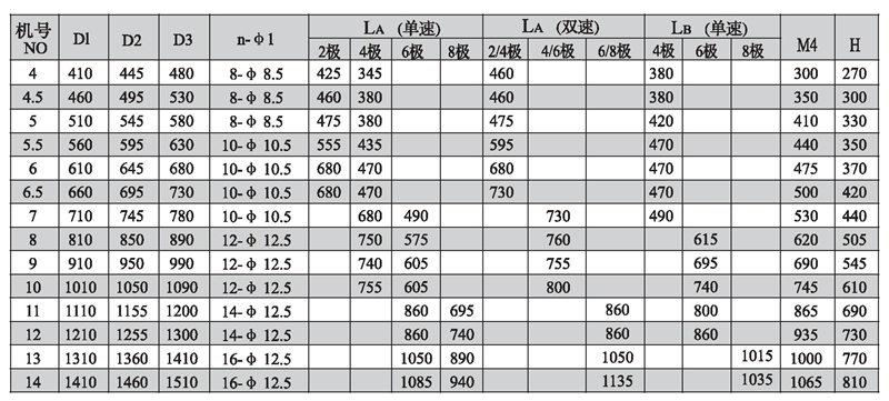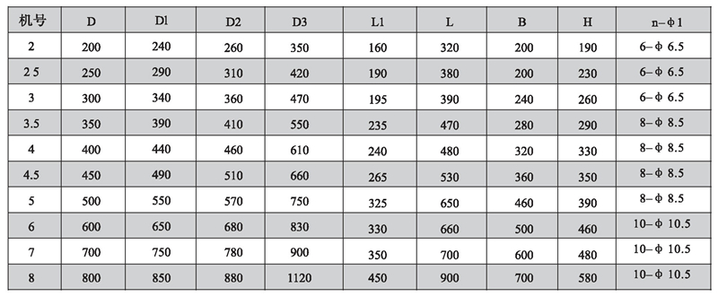 注:風(fēng)機(jī)出廠時(shí)法蘭一般不打孔。n-φ1僅供參考,若要打孔請(qǐng)用戶在訂貨時(shí)說明.