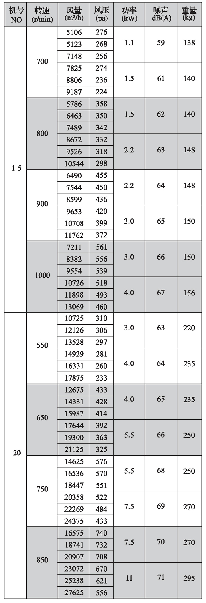 三、性能參數(shù)表