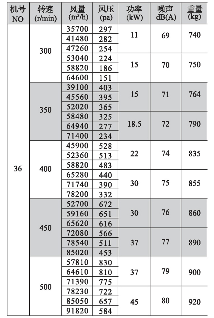 2.機(jī)號(hào)NO為葉輪直徑英寸數(shù),如電機(jī)放在風(fēng)機(jī)上面,A型高度須補(bǔ)加電機(jī)高度,寬度須補(bǔ)加皮帶罩寬度;如電機(jī)放在風(fēng)機(jī)側(cè)面,A型寬度須補(bǔ)加電機(jī)長(zhǎng)度。