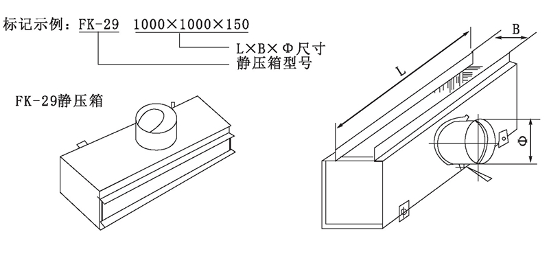 靜壓箱是與條縫形風口配套的必不可少的配件,主風道送風通過軟管接至靜壓箱的頸部(即“中”尺寸處)此處設有一個蝶形閥,可控制進入靜壓箱的風量。靜壓箱的內(nèi)表面貼有吸音減震材料,起到消除部分噪音的作用。送風道配置靜壓箱能減少動壓增加靜壓,起到穩(wěn)定氣流的作用,使之能得到更理想的送風效果。BXL可根據(jù)條縫風口尺寸而定,中尺寸根據(jù)所選用的軟管直徑而定,L尺寸用戶可在小于2米范圍內(nèi)任意選取,還可以根據(jù)用戶的特殊要求承接靜壓箱的設計制造。